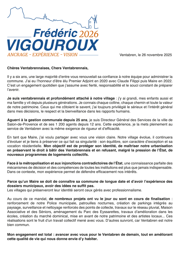 Bienvenue sur le site de campagne de l’équipe Frédéric Vigouroux 2026 !